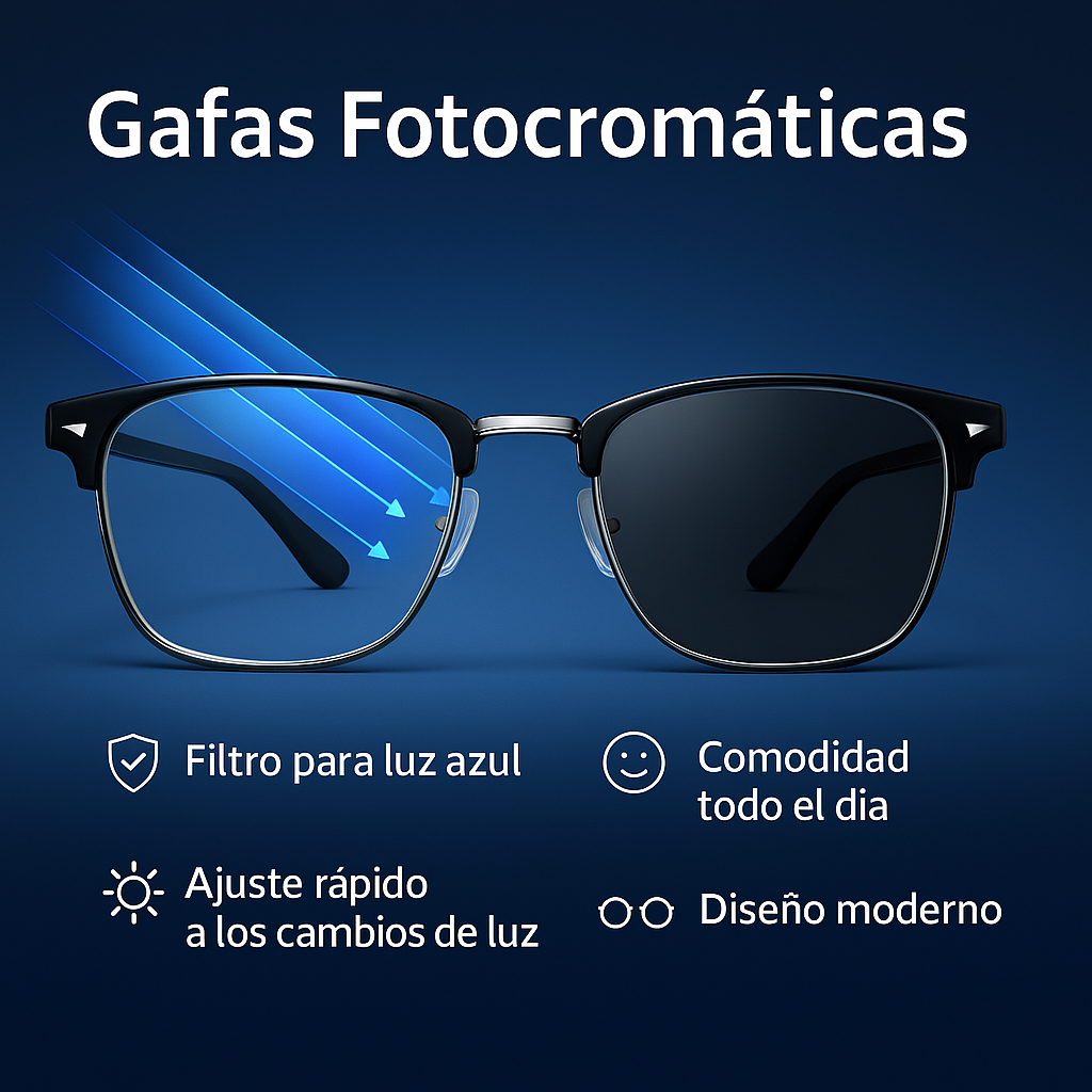 No solo cuidan tus ojos: realzan tu personalidad. Estas gafas unisex combinan elegancia, versatilidad y la tecnología fotocromática que te acompaña en cada momento del día.