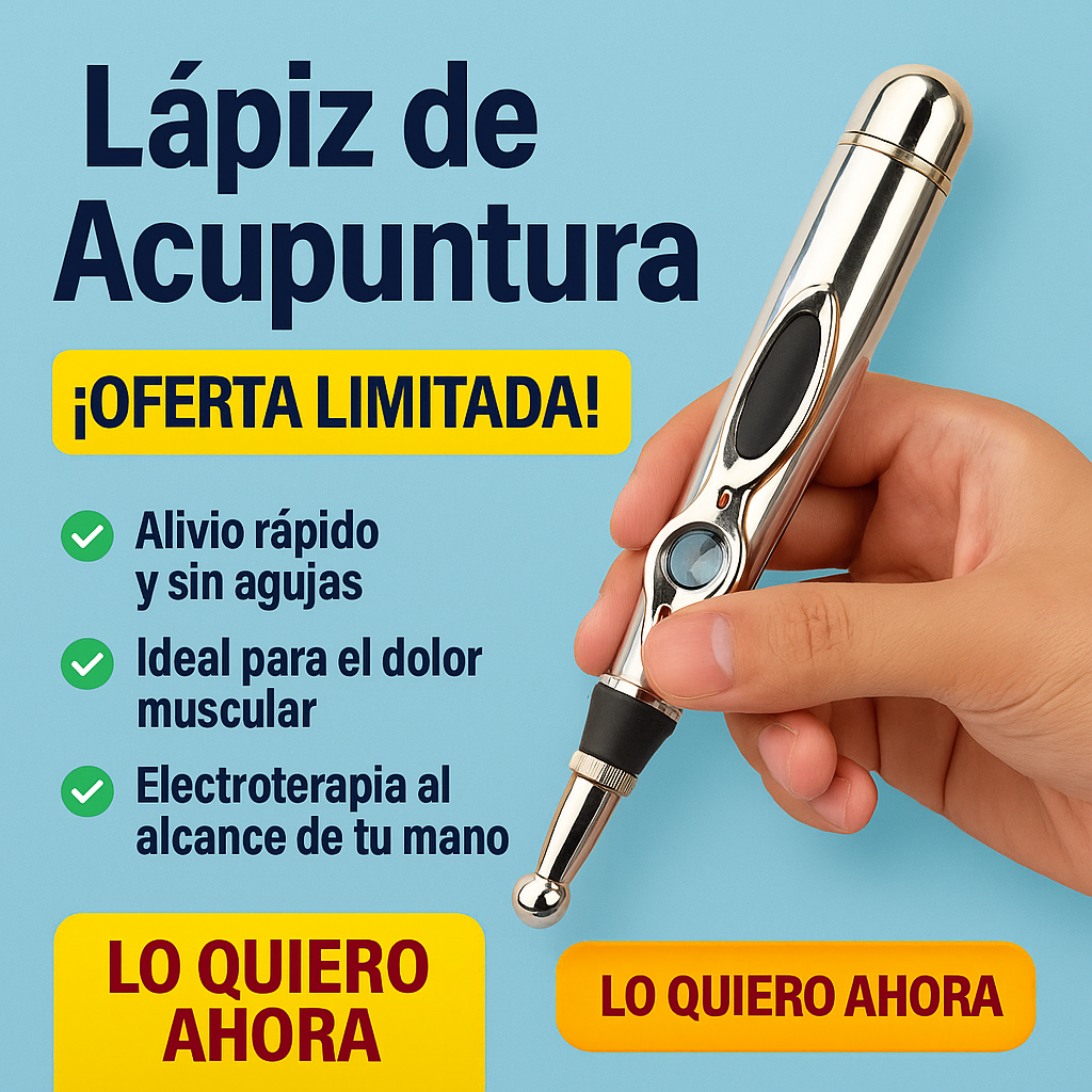 El Lápiz de Acupuntura Pro Healty utiliza microimpulsos eléctricos que estimulan los puntos de energía del cuerpo (meridianos), imitando la acupuntura tradicional sin agujas.