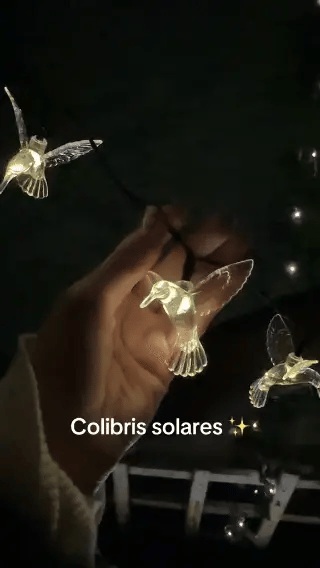 Al anochecer, las luces se encienden automáticamente y los colibríes comienzan a brillar con cambios de color suaves.